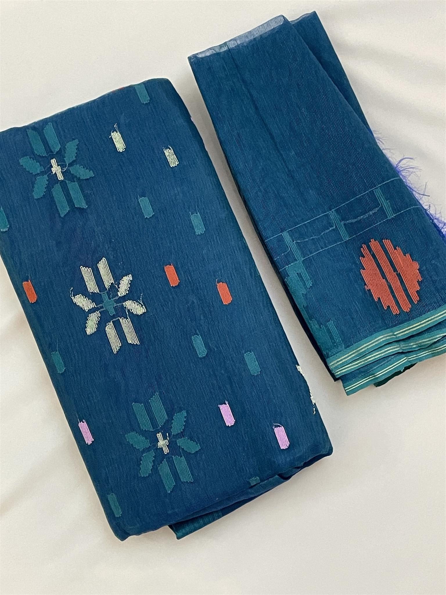 Jamdani Saree – Teal green