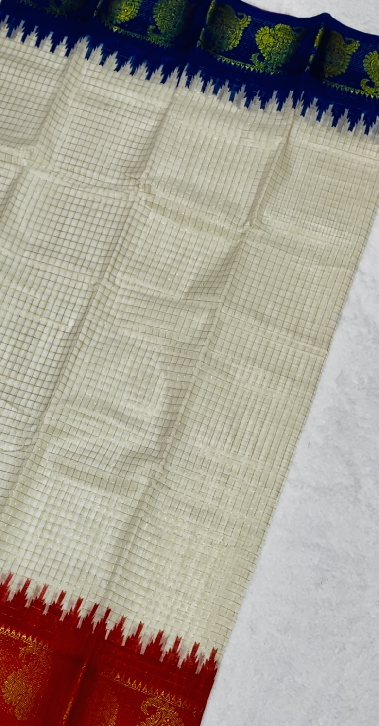 A soft off-white Madurai cotton saree, perfect for everyday casual wear.