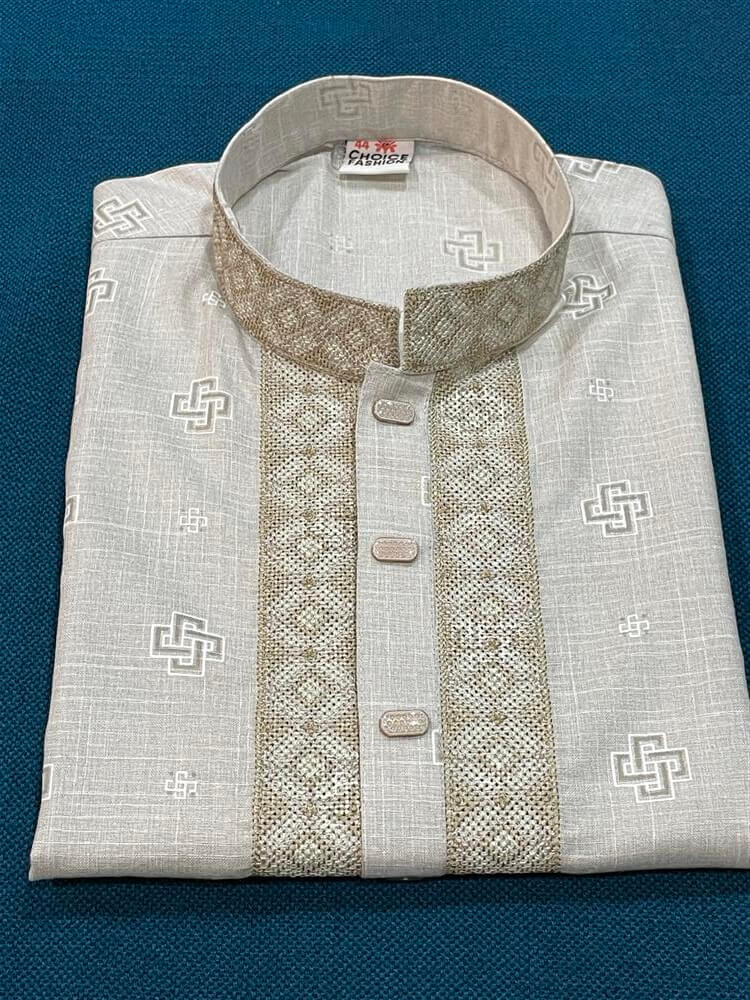 Men’s Khadi Cotton Panjabi/Kurta – Embroidery work – Beige/Off-white color