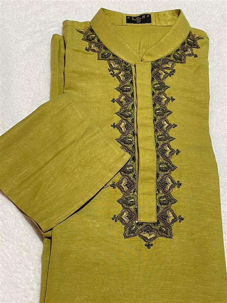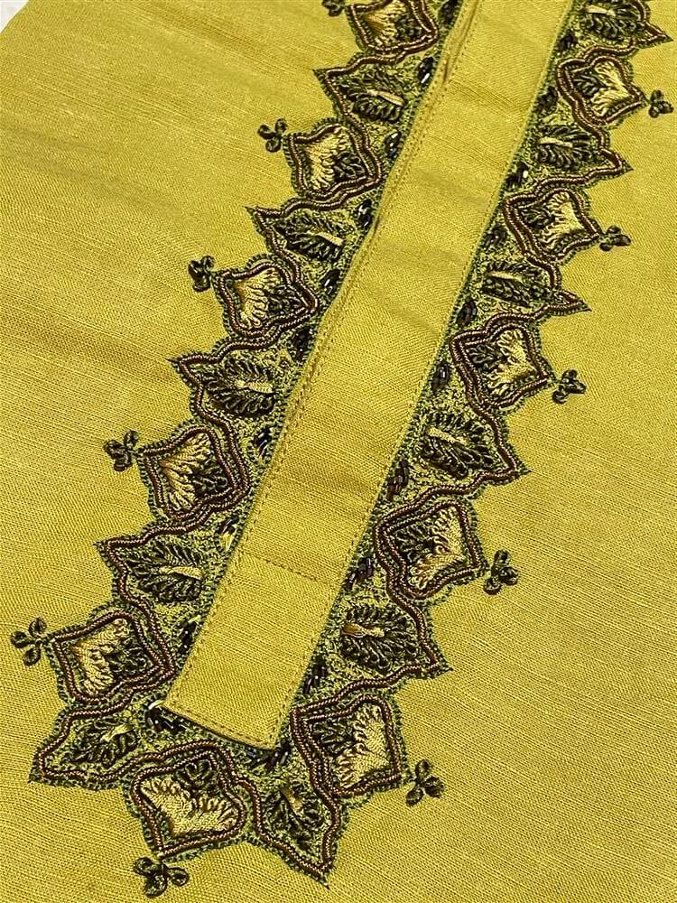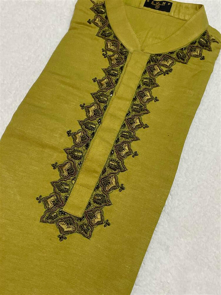 Men’s Premium Cotton Panjabi/Kurta – Hand Zardozi work – Olive-green