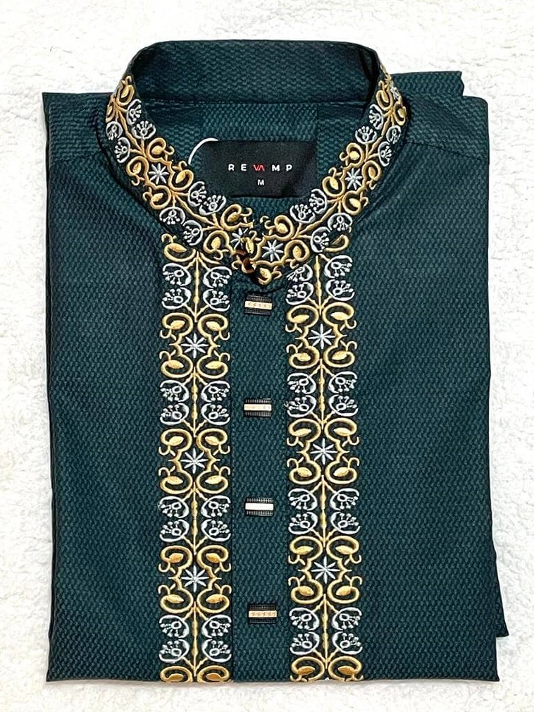 Men’s Premium fabric Panjabi/Kurta – Embroidery work – Teal color