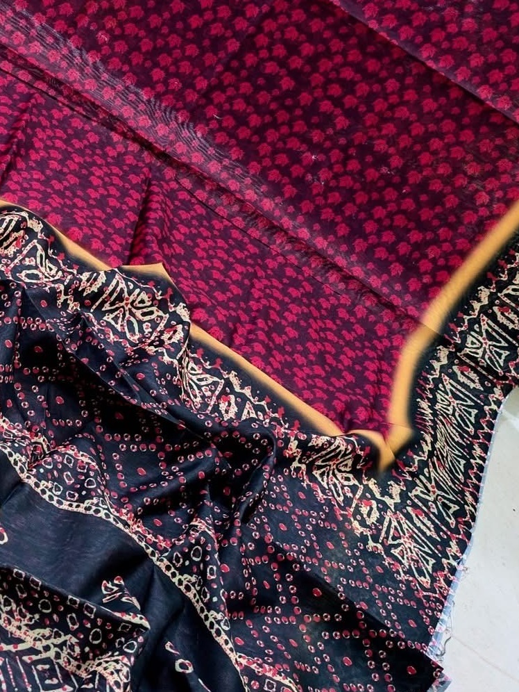 A vibrant magenta silk handcrafted batik saree, perfect for casual, party & cultural wear, ideal for both casual and festive occasions.